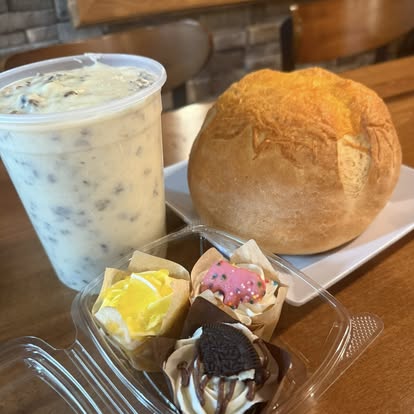 Sweet river has friendly service, delicious foods and the baked goods are fantastic!! Sweet River spoils their customers with little extras.
